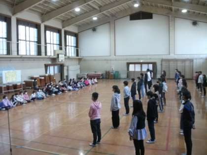 ここ数日は,体育館全面を使って41名の子どもたちが音楽の学習をしていました。