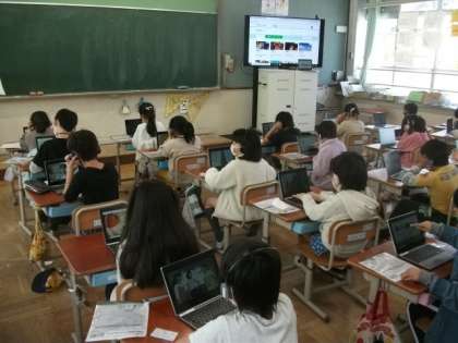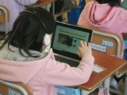 2年生は,GIGAタブレットを使ってNHK for School の番組視聴をしています。今日は一斉に同じ内容を見るのではなく,少し苦手だった単元の内容を思い出して番組を選び,復習しています。(ヘッドフォンは,一人1台ずつ学校で用意したものです。)