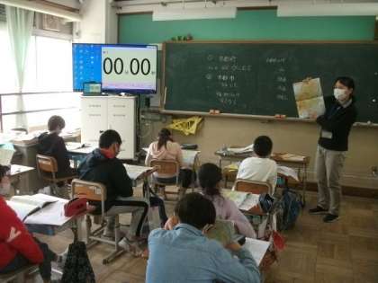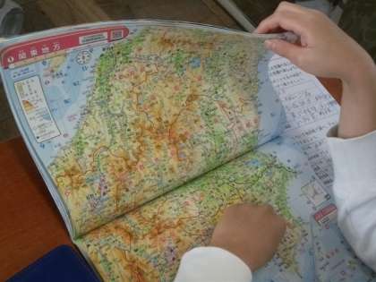 4年生は,地図帳を使いながら,復習問題に取り組んでいます。