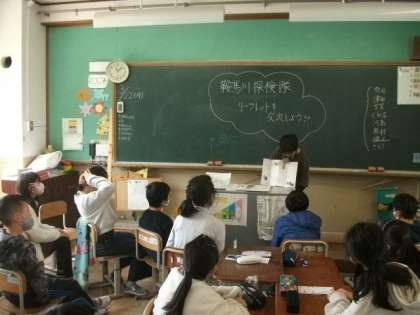 「鞍馬川探検隊」の活動を通して集めた情報をリーフレットにして発表をしています。