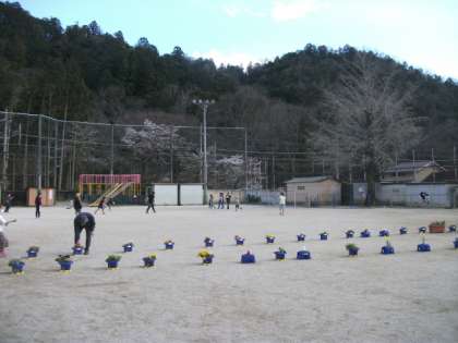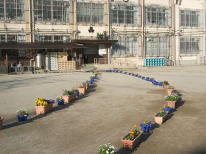 植木鉢やプランターを使い,心を込めてフラワーロードを作りました。