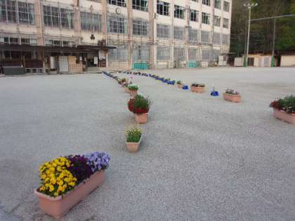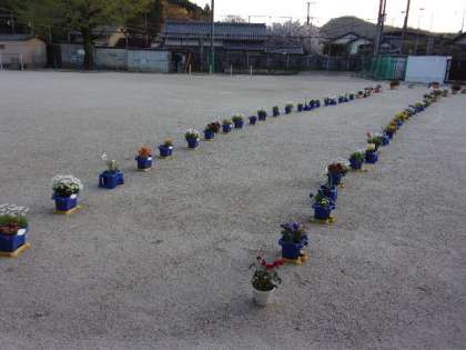 市原野小の入学式や卒業式では,すっかり定番となった「フラワーロード」の完成です。