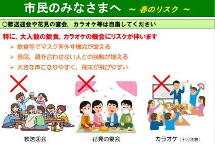 保護者・地域の皆様には,手洗いやマスクの着用など,日頃の感染予防対策とともに,それぞれが,注意深く早めの対応をしていただいていることに感謝申し上げます。今後も,正確な情報,事実の元,適切な予防を行い,自分自身と周りの人を守っていきましょう。