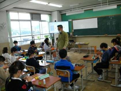 4年生は算数で角度の学習を進めています。今日は折り紙で扇の形を作っています。