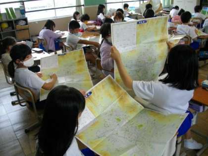 3年生は,初めて地図帳を手にしました。さっそく「市原野」や「静原」を探しているお友達がいました。