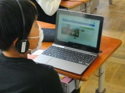 GIGAタブレットを使ってショートコンテンツを視聴しています。一人1台ずつ使えるので,自分の興味や得意分野・苦手分野に合わせて「選択」できるところが魅力です。