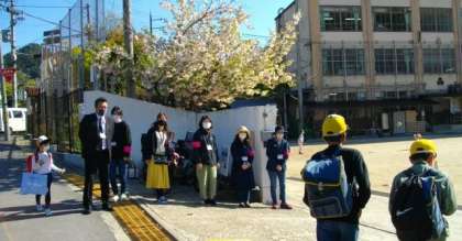 昨日,メール配信でご案内があったように,PTAの方々が「挨拶運動の日」ということで校門前で子どもたちに声をかけていただきました。