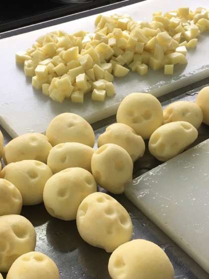 大人気の【カレー】です。にんじんにたまねぎ,じゃがいもといった野菜をお肉とともにぐつぐつと煮込んで作りました。春の時期にとれた【じゃがいも】と【たまねぎ】は,ほくほくしており,甘くてみずみずしい特徴が感じられました。