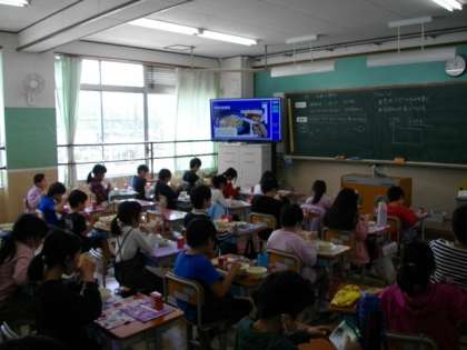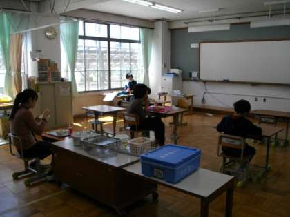 給食の時間は,全員が前を向いて,「黙食」を心がけています。