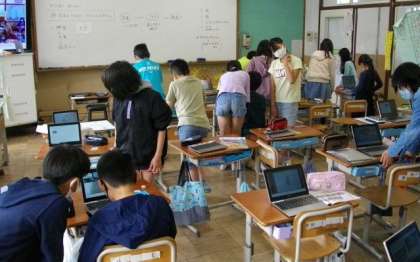 5年生は,タブレットを使ってアニメーションづくりに取り組んでいます。