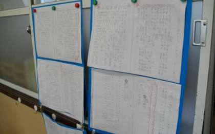 「すてきなノートコーナー」には,丁寧に取り組んだノートのコピーが掲示されています。