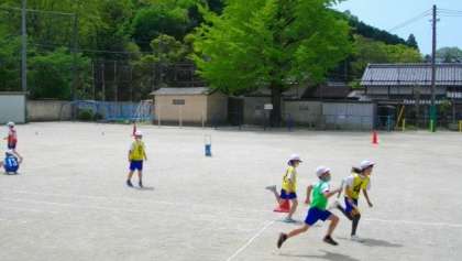 4年生が,力いっぱい,リレーに取り組んでいます。