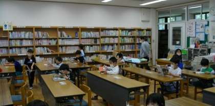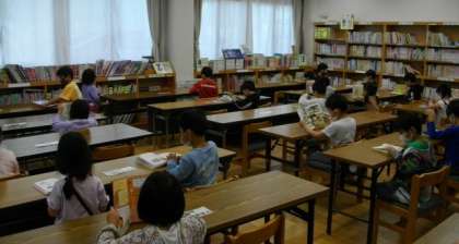 1年生は図書館の探検をして,気に入った本を手にとっています。