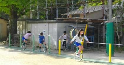 上手に一輪車にのっているお友達もいます。