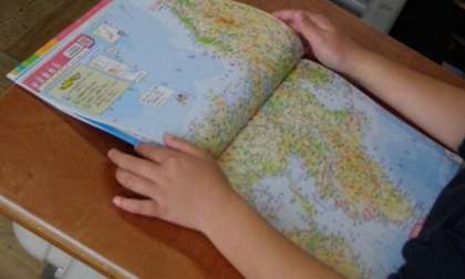 4年生は,地図を使って地名探しクイズに取り組んでいます。