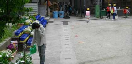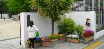 嚥下委員会のお友達が,花に水をやってくれています。