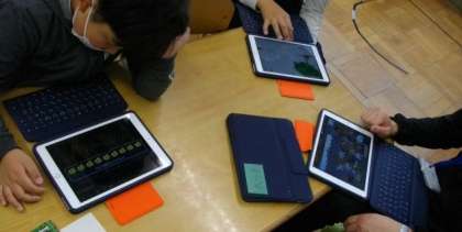 3組は,算数の学習のあと,タブレットを使ってまとめの学習をしています。