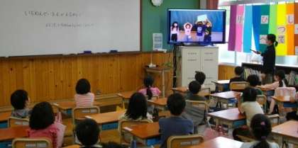 下段はビデオ映像からのクリップ画像です。それぞれの教室で全学年分を鑑賞しました。)