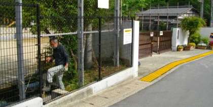池の周りの整備と,校門前の安全地帯の塗装をしました。