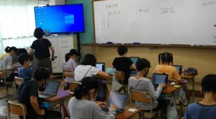 今日は「自ら学ぶ子」「心豊かな子」「たくましい子」になるために,5年生の自分は何を頑張りたいと思うのか,ロイロノートを使って自分の考えをまとめています。このあと,提出をして意見を共有して話合いに進みます。