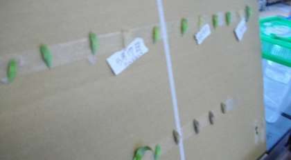 たくさんのサナギがありますが,今日は2頭の蝶が,羽を広げるところを見ることができました。なかなか見ることができない貴重な経験です。