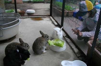 「前にならえ」をしているわけではないのですが,なぜか2列になってお行儀よく食べています。