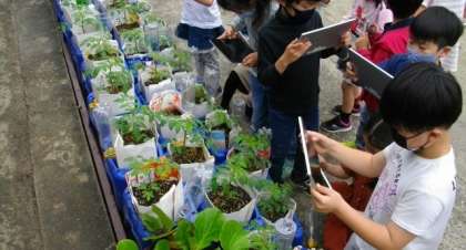 2年生は,観察日記をつくるためにタブレットを使って写真撮影をしています。