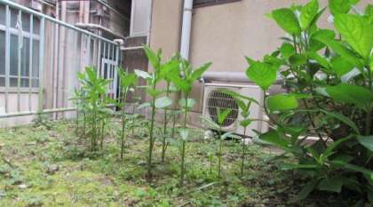 中庭の植物が,ぐんぐん育っています。