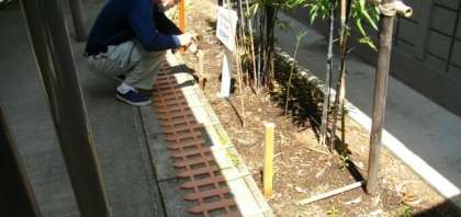 特別棟前に黒竹を植えています。