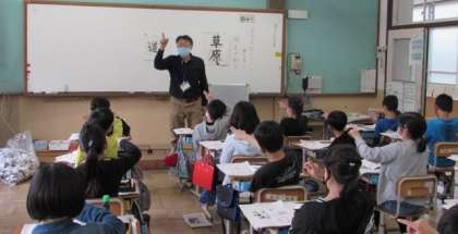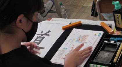 習字の時間です。今日は「道」の字を書きます。