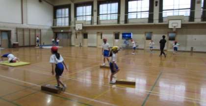 2年生は,体育館で,用具を使いながらいろいろな動きを工夫して楽しんでいます。