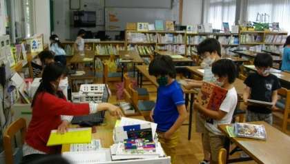 3年生は,学校図書館で本を借りています。