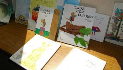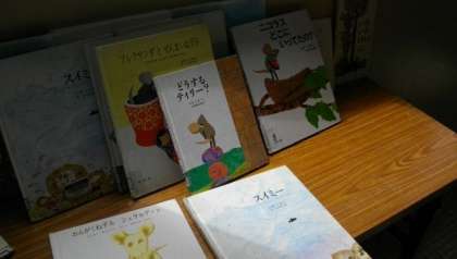 教室前には,レオ・レオニ作の絵本が並べられています。