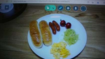 6年生は,家庭科で,自宅でつくった朝食メニューの写真をもとに,説明用の資料を作っています。パンにはさんだキャベツには,こしょうとカレーパウダーをまぶしているそうです。