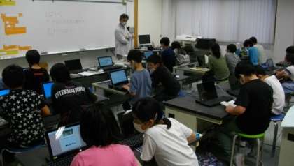 4年生はコンピュータ室で学習中です。タブレットドリルに取り組んでいるお友達もいます。