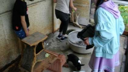 飼育委員会では,うさぎの紹介ポスターを作るために,タブレットで撮影を試みていますが……とにかく動きますので,なかなかシャッターチャンスがありません…