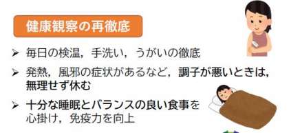 保護者・地域の皆様には,日頃の感染予防対策とともに,それぞれが注意深く早めの対応をしていただいていることに感謝申し上げます。