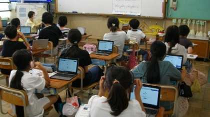 5年生は,音楽の時間に,バイオリンやビオラの音の聞き比べを進めています。