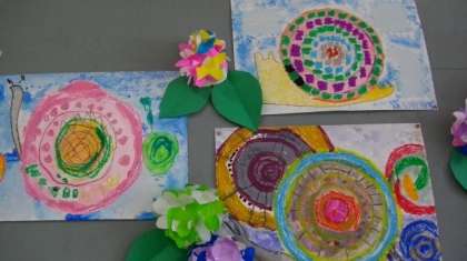 3組のお友達は,コンパスを使って学習した後,自由に円を描く練習をし,彩色しました。
