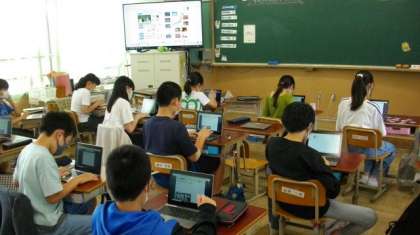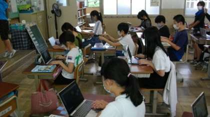 6年生の外国語科で,「ふりかえり」をタブレットを使って保存しています。
