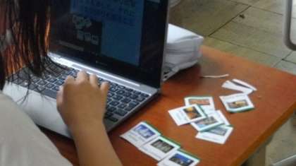 学習活動で使ったグッズなどを写真撮影し,コメントを入れています。