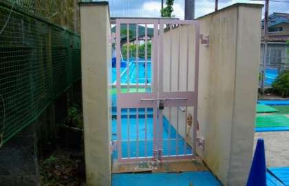 プールの扉の塗装を行いました。