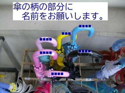 傘に名前を入れる場合は,柄の部分に名前を貼っていただくと,大変わかりやすいので,ご協力ください。