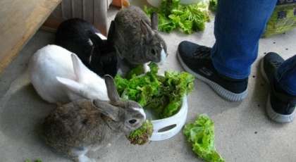 大量のサニーレタスにかこまれて,幸せそうななかよしうさぎたちです。