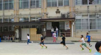 朝マラソンで,いっしょうけんめいに走っている様子をみていた低学年のお友達が,「ぼくらも走る!」といって,運動場を走っていました。