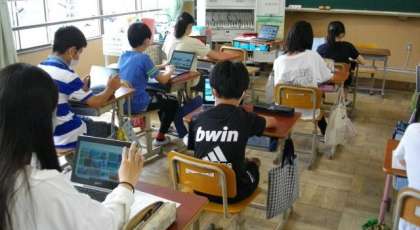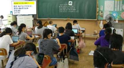 6年生は,朝の時間にタブレットを使って,ニュースを見たりタイピングの練習をしたりしています。