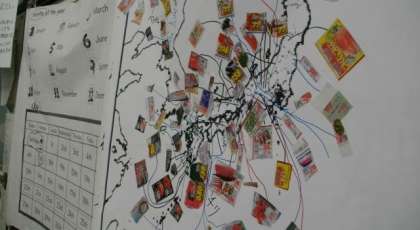 5年生は,食品の産地調べを広告をつかって行いました。
