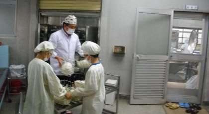 給食の準備が始まりました。