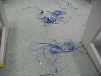 コンピュータ室の電気コードを回収し,床からでていたLANケーブルなどを整理しました。