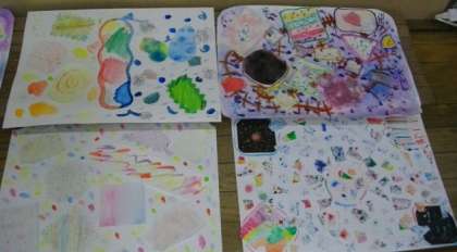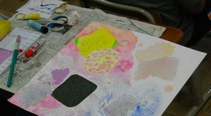 5年生の図画工作科の学習の時間です。心のもよう作りに取り組んでいます。